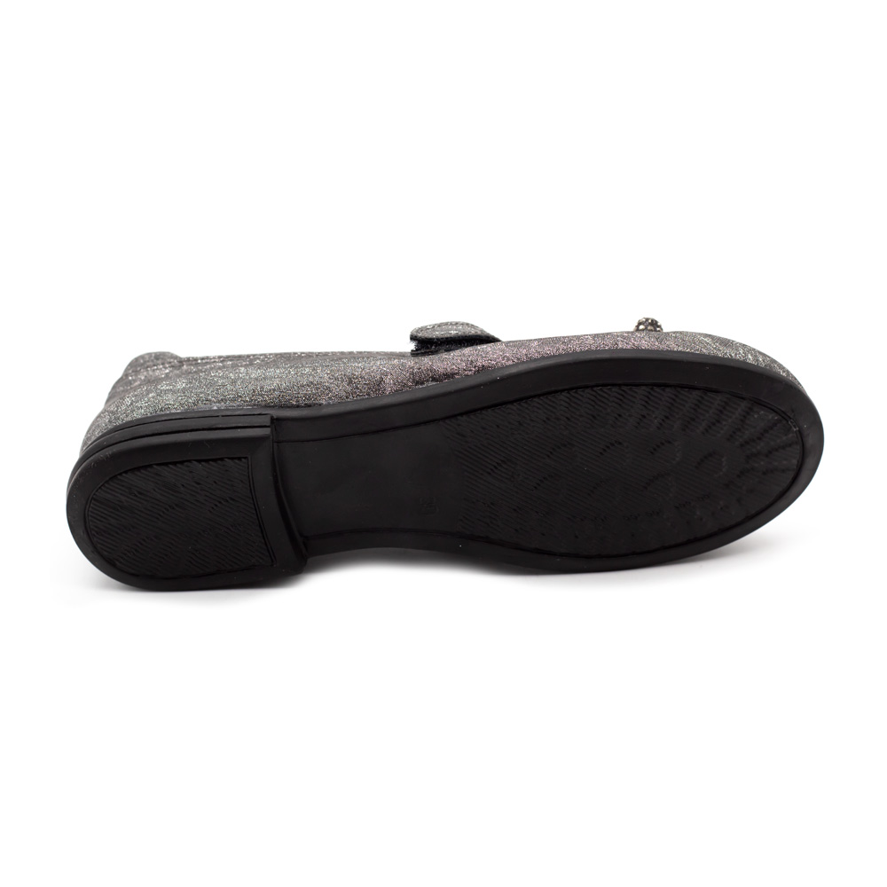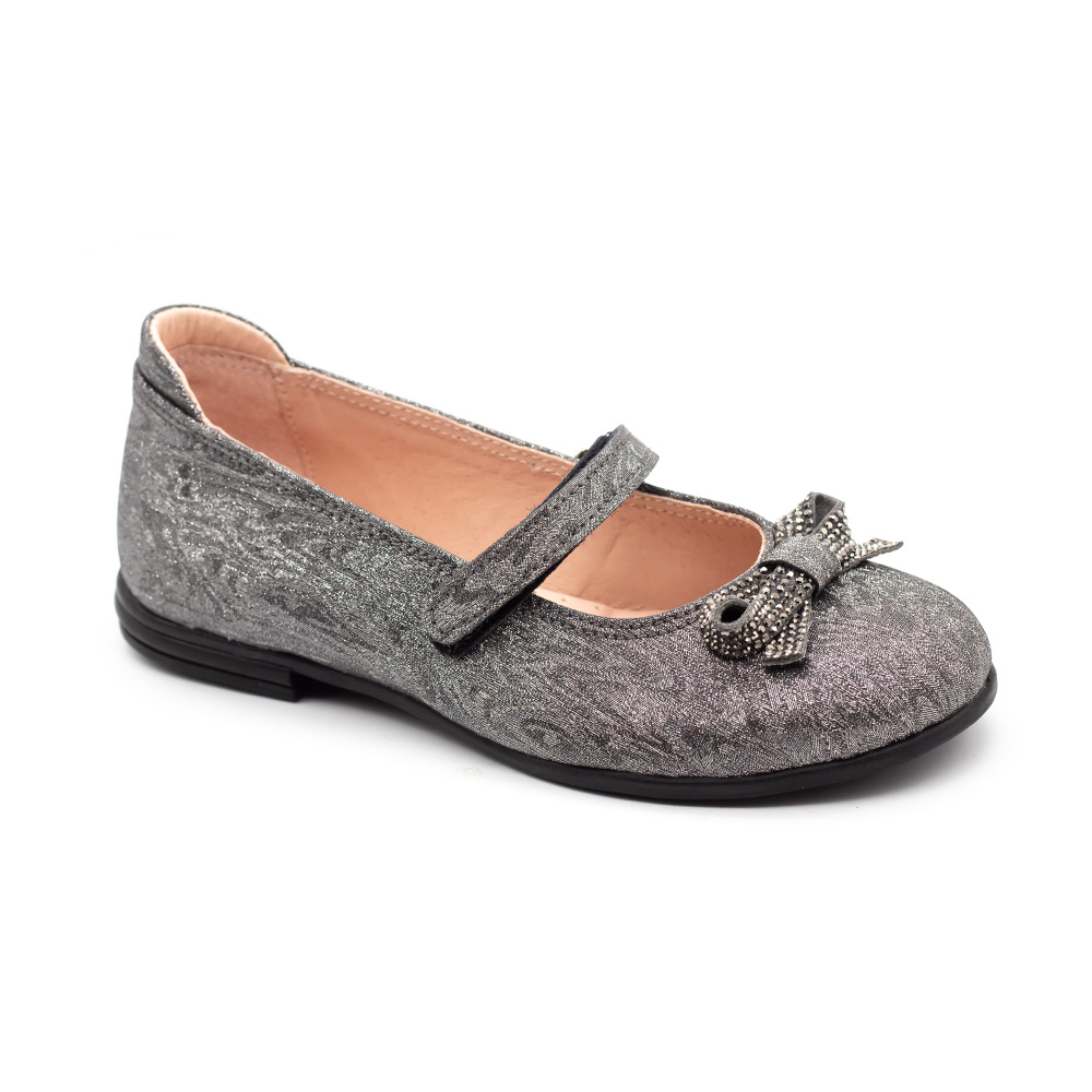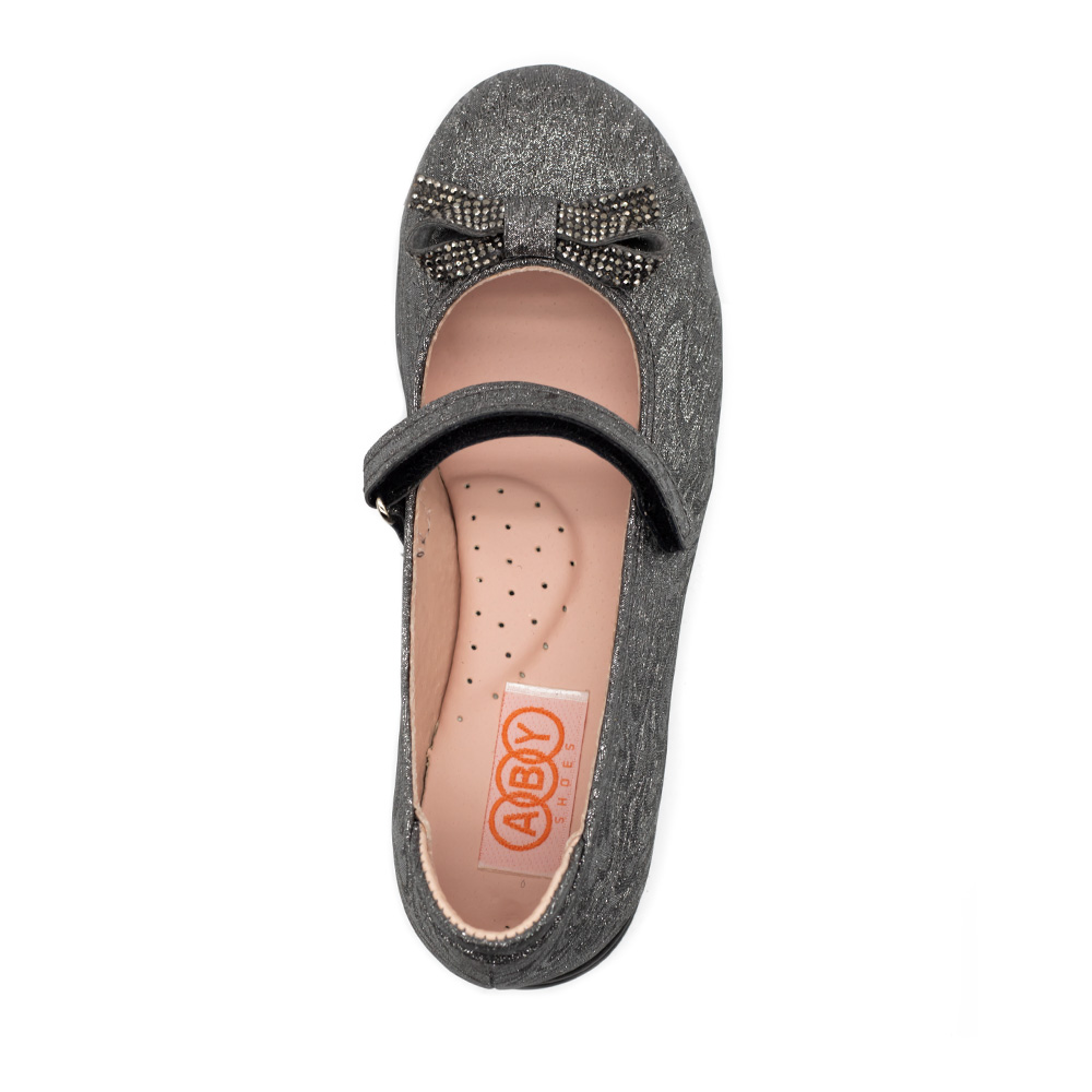 Παιδική μπαλαρίνα για κορίτσια της εταιρείας Aby ελληνικής κατασκευής.Μπαλαρίνα σε ασημί λαμπερό χρώμα, στολισμένη με φιόγκο από στρασσ στο μπροστινό μέρος.Εσωτερικά είναι φοδραρισμένη με δέρμα και έχει δερμάτινο ανατομικό πατάκι. Δένει με ελαστική μπαρέτα και έχει πολύ καλή εφαρμογή. Η σόλα είναι από καουτσούκ, μαλακή, εύκαμπτη και αντιολισθητική. Μπαλαρίνα υψηλής αισθητικής για επίσημες και μη εμφανίσεις.Ασημί γυαλιστερή μπαρέτα με διακόσμηση Φιόγκος από στρασσ. Δέσιμο με αυτοκόλλητο velcro. Με δερμάτινη επένδυση και μαλακό δερμάτινο ανατομικό πατάκι, παρέχοντας άνεση στο περπάτημα, ενώ η σόλα είναι αντιολισθητική καουτσούκ.Μπαρέτες για κορίτσι για κλασικό και διαχρονικό στυλ, ιδανικές για κομψό ντύσιμο. Παπούτσι με φόδρα εσωτερικά και δερμάτινο πάτο. Επένδυση εξωτερικά από συνδυασμό υλικών. Άνετη σόλα εύκαμπτη και αντιολισθητική για μεγαλύτερη άνεση. Κλείνει με ρυθμιζόμενο βέλκρο για άψογη εφαρμογή στο πόδι. Από δέρμα χωρίς χρώμιο.Διακόσμηση γυαλιστερή επιφάνει φιόγκος από στρασσ.Παιδική μπαλαρίνα για κορίτσια της εταιρείας Aby ελληνικής κατασκευής.Λαμπερή μπαλαρίνα σε ασημί χρώμα, στολισμένη με φιόγκο στρασσ στο μπροστινό μέρος και strass.Εσωτερικά είναι φοδραρισμένη με δέρμα και έχει δερμάτινο ανατομικό πατάκι. Δένει με ελαστική μπαρέτα και έχει πολύ καλή εφαρμογή. Η σόλα είναι από καουτσούκ, μαλακή, εύκαμπτη και αντιολισθητική. Μπαλαρίνα υψηλής αισθητικής για επίσημες και μη εμφανίσεις.