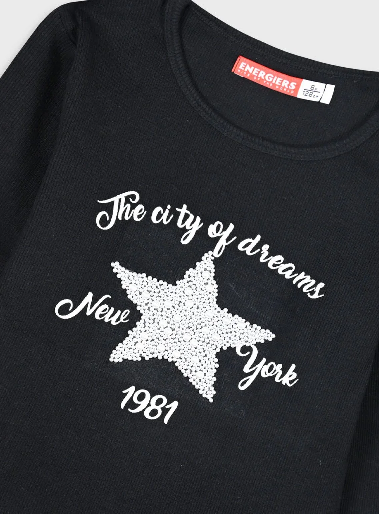 ENERGIERS Μακρυμάνικη ριπ μπλούζα 16-125223-5 Μαύρο