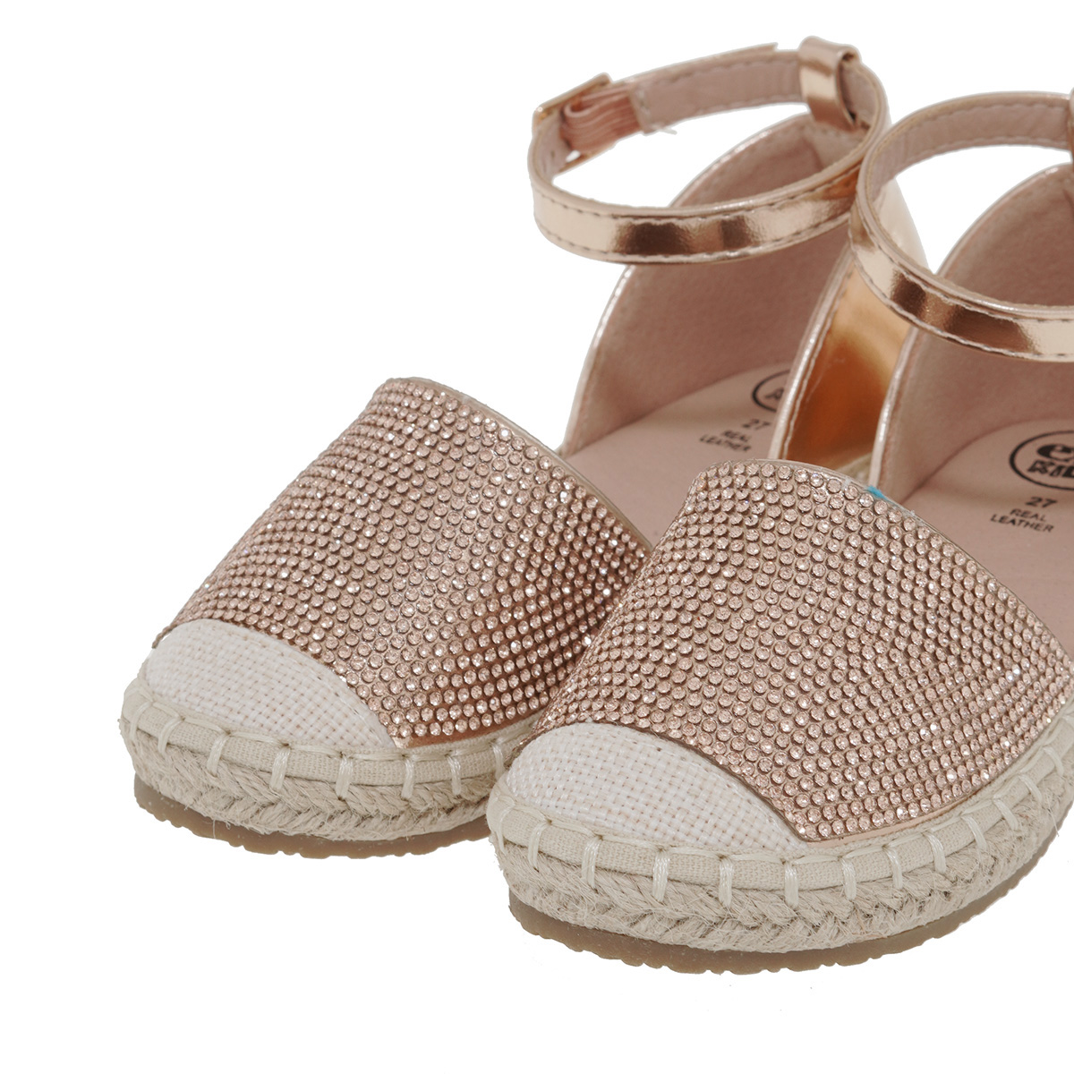 Κοριτσίστικες εσπαντρίγιες της μάρκας ΕΧΕ ΚΙDS σε συνδυασμό υλικών, πάτος από οικολογικό δέρμα, βοηθά στην διατήρηση της καλής ιδιότητας υγιεινής. Σόλα από υλικό υψηλής ποιότητας. Ύψος σόλας 2 cm πίσω και 1,5 cm εμπρός.Κοριτσίστικο παπούτσι Valencia, από τη μάρκα Exe Kids. Από καστόρι, με λουράκι με αγκράφα για να δένει στη φτέρνα. Άνετο πάτωμα με μικρή εσπαντρίγια καλυμμένη με γιούτα.,Φινετσάτα και στυλάτα θα απογειώσουν τις πιο girly-chic εμφανίσεις των μικρών μας φίλων.