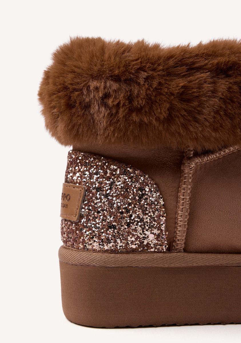 Μποτάκια τύπου UGG με την υπογραφή της εταιρείας Gioeppo.Μην σας πιάσει το κρύο! Ταμπά μπότες αυστραλιανού στιλ. Διαθέτουν επένδυση και σόλα από πολυεστέρα που αναπνέει και σόλα από καουτσούκ. Η νέα συλλογή από την Gioseppo Kids θα κάνει τα μικρά να χαμογελάσουν…Λαμπερές αυστραλιανές μπότες με γούνινο γιακά και πλατφόρμα. Προστατεύουν από πιτσιλιές νερού και υγρασία. Διαθέτουν επενδεδυμένο πάτο και γούνινη επένδυση. Επάνω μέρος από μικροΐνες και γκλίτερ. Επένδυση και πάτος από συνθετική γούνα. Ελαφριά σόλα από EVA.