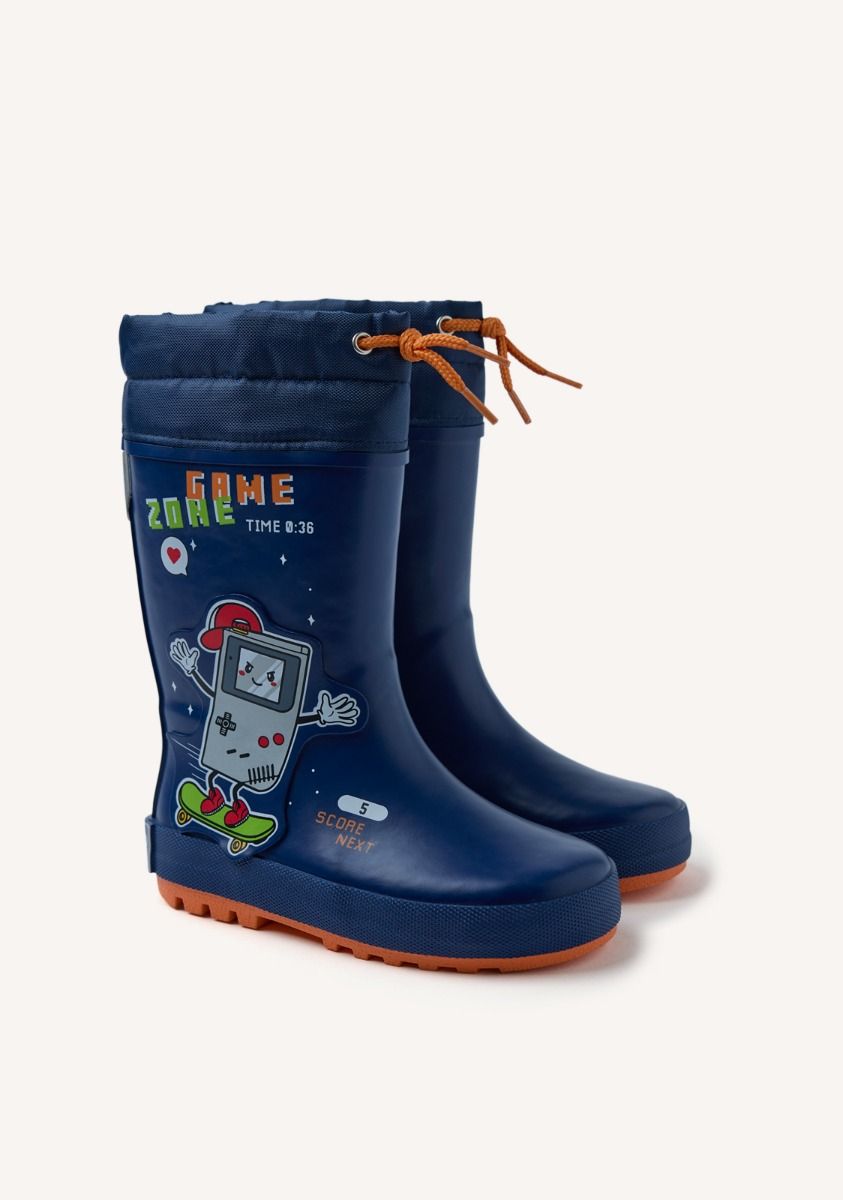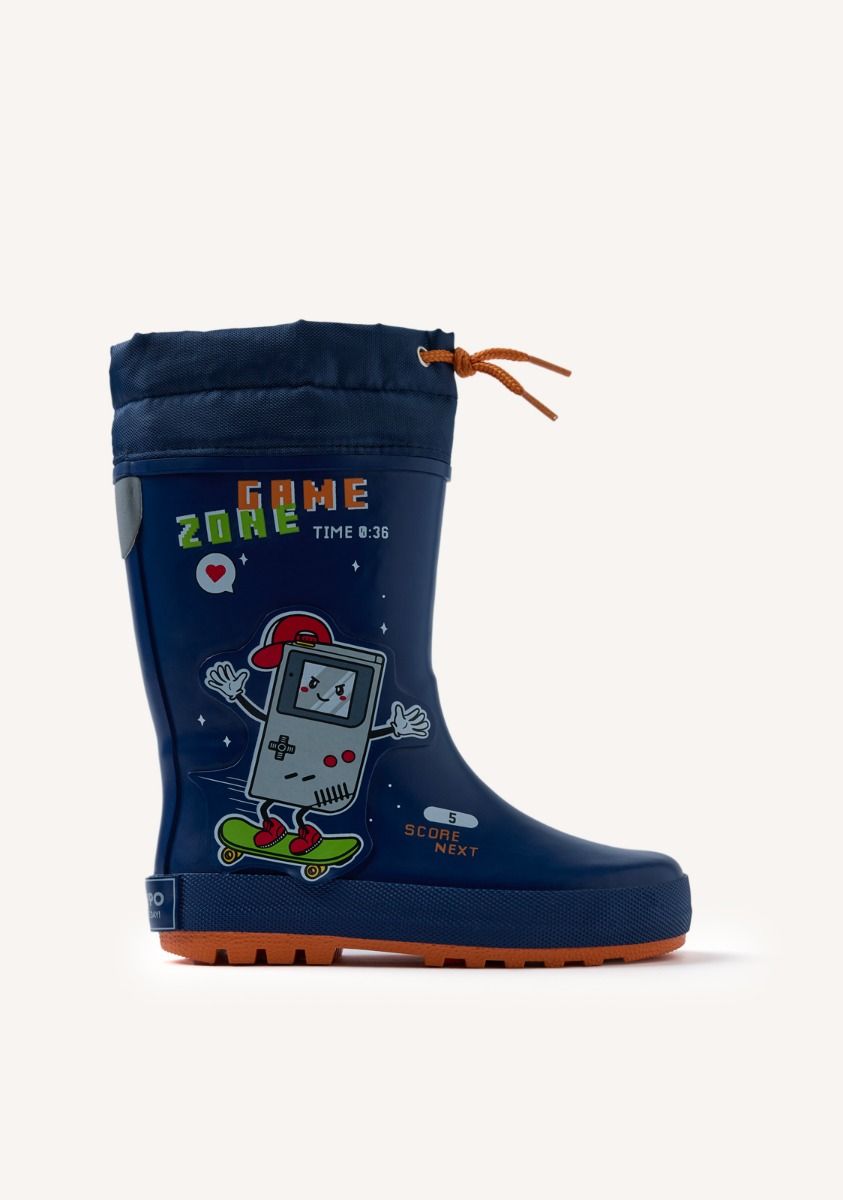 Αδιάβροχες μπότες με σχεδιασμό gamer και ρυθμιζόμενο κολάρο. Διαθέτουν αντιολισθητική σόλα και αφαιρούμενη, επενδεδυμένη εσωτερική σόλα. Άνω μέρος από καουτσούκ και πολυεστέρα. Επένδυση από βαμβάκι. Εσωτερικός πάτος από πολυεστέρα. Εύκαμπτη σόλα TPR.
