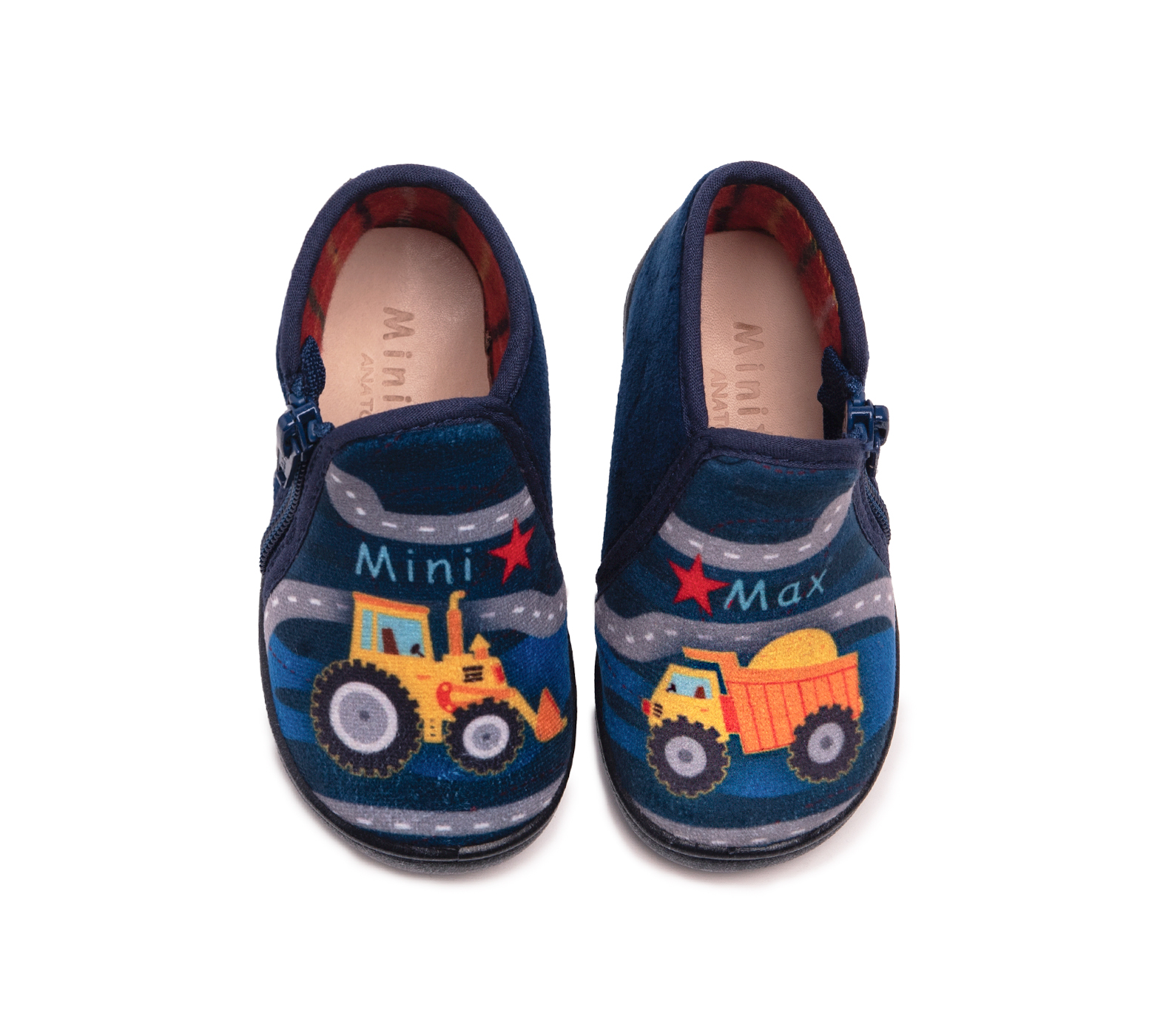 Κλειστές με φερμουάρ για εύκολη εφαρμογή και αφαίρεση,διαθέτουν ανατομικό αποσπώμενο δερμάτινο πάτο για να πλένεται ,υπέροχο σχέδιο σε Μπλε αποχρώσεις που θα ενθουσιάσει τους μικρούς μας φίλους και θα τους δώσει τη ζεστασιά που χρειάζονται.Ανατομικό παιδικό παντοφλάκι της εταιρείας MINIMAX. Έχει αντιολισθητική σόλα και δερμάτινο πατάκι χωρίς χημική επεξεργασία. Κατασκευασμένο από άριστης ποιότητας ύφασμα που αφήνει το πόδι να αναπνέει. Με ωραία σχέδια και φωτεινά χρώματα στο επάνω μέρος. Πλένεται στο πλυντήριο στους 30 βαθμούς χωρίς στείψιμο, και στεγνώνεται μακριά από πήγες θερμότητας. Ο δερμάτινος πάτος αφαιρείται και πλένεται ξεχωριστά με κρύο νερό. Ιδανικό παντοφλάκι για τα πρώτα τους βηματάκια. Κατασκευασμένο σύμφωνα με τις ευρωπαϊκές προδιαγραφές, σε ευρωπαϊκά εργοστάσια.Ανατομικό παιδικό παντοφλάκι της εταιρείας MiniMax, κατασκευασμένα στη Γαλλία . Διαθέτει αντιολισθητική σόλα και δερμάτινο πατάκι χωρίς χημική επεξεργασία. Κατασκευασμένο από υψηλής ποιότητας ύφασμα που αφήνει το πόδι να αναπνέει. Πλένεται στο πλυντήριο στους 30 βαθμούς χωρίς στείψιμο, και στεγνώνεται μακριά από πήγες θερμότητας. Ο δερμάτινος πάτος αφαιρείται και πλένεται ξεχωριστά με κρύο νερό. Τέλειο παντοφλάκι για τα πρώτα τους βήματα. Ασφαλίζει στο πλάι με φερμουάρ.Κατασκευασμένο από άριστης ποιότητας ύφασμα που αφήνει το πόδι να αναπνέει. Με ωραία σχέδια και φωτεινά χρώματα στο επάνω μέρος. Πλένεται στο πλυντήριο στους 30 βαθμούς χωρίς στείψιμο, και στεγνώνεται μακριά από πήγες θερμότητας. Ο δερμάτινος πάτος αφαιρείται και πλένεται ξεχωριστά με κρύο νερό. Ιδανικό παντοφλάκι για τα πρώτα τους βηματάκια. Κατασκευασμένο σύμφωνα με τις ευρωπαϊκές προδιαγραφές, σε ευρωπαϊκά εργοστάσια.Σε Μπλε χρώμα. Η φόρμα τους είναι μικρή. Επιλέξτε ένα νούμερο μεγαλύτερο.