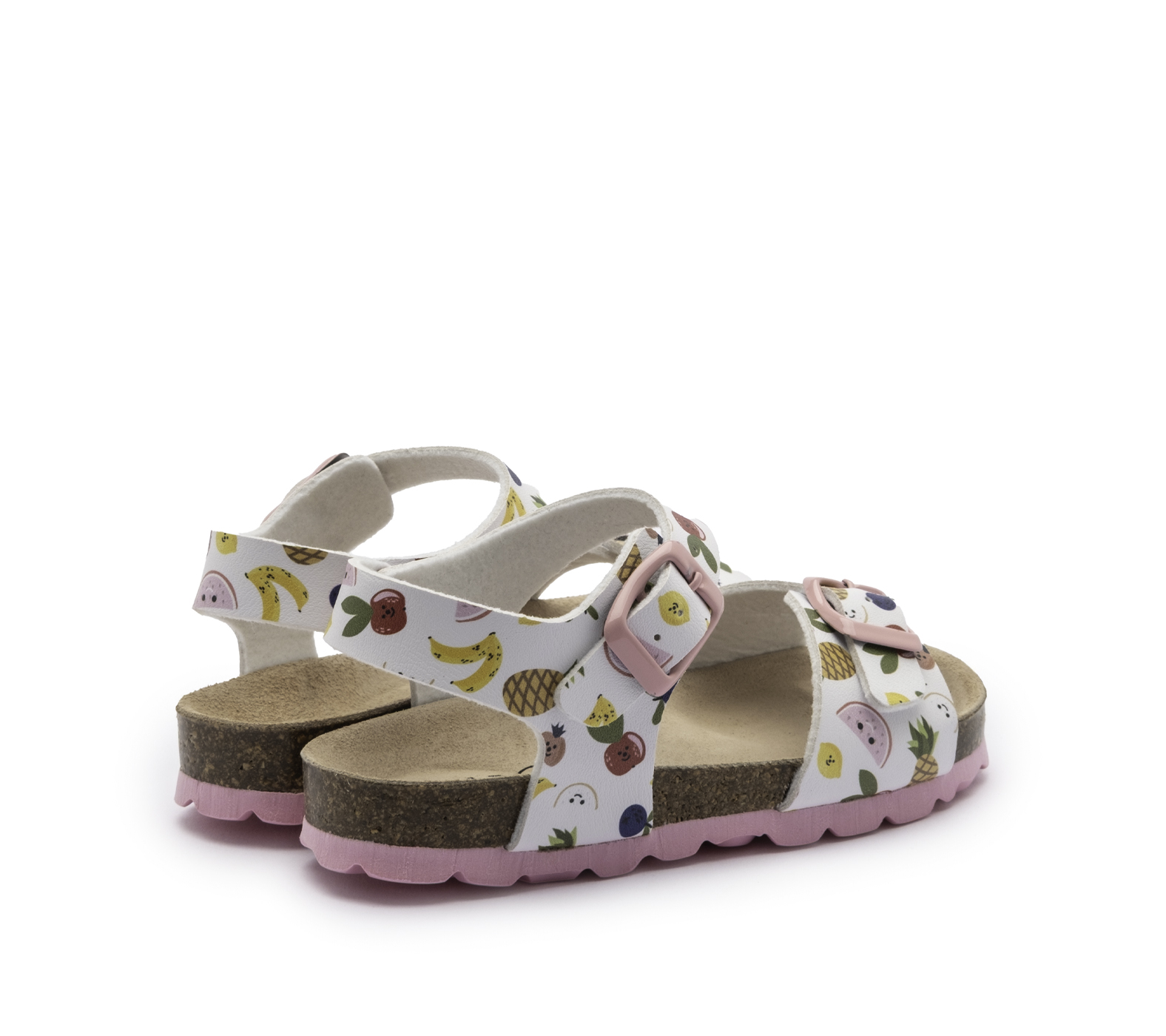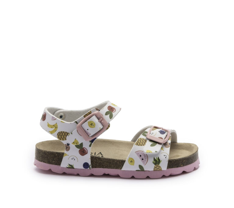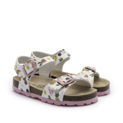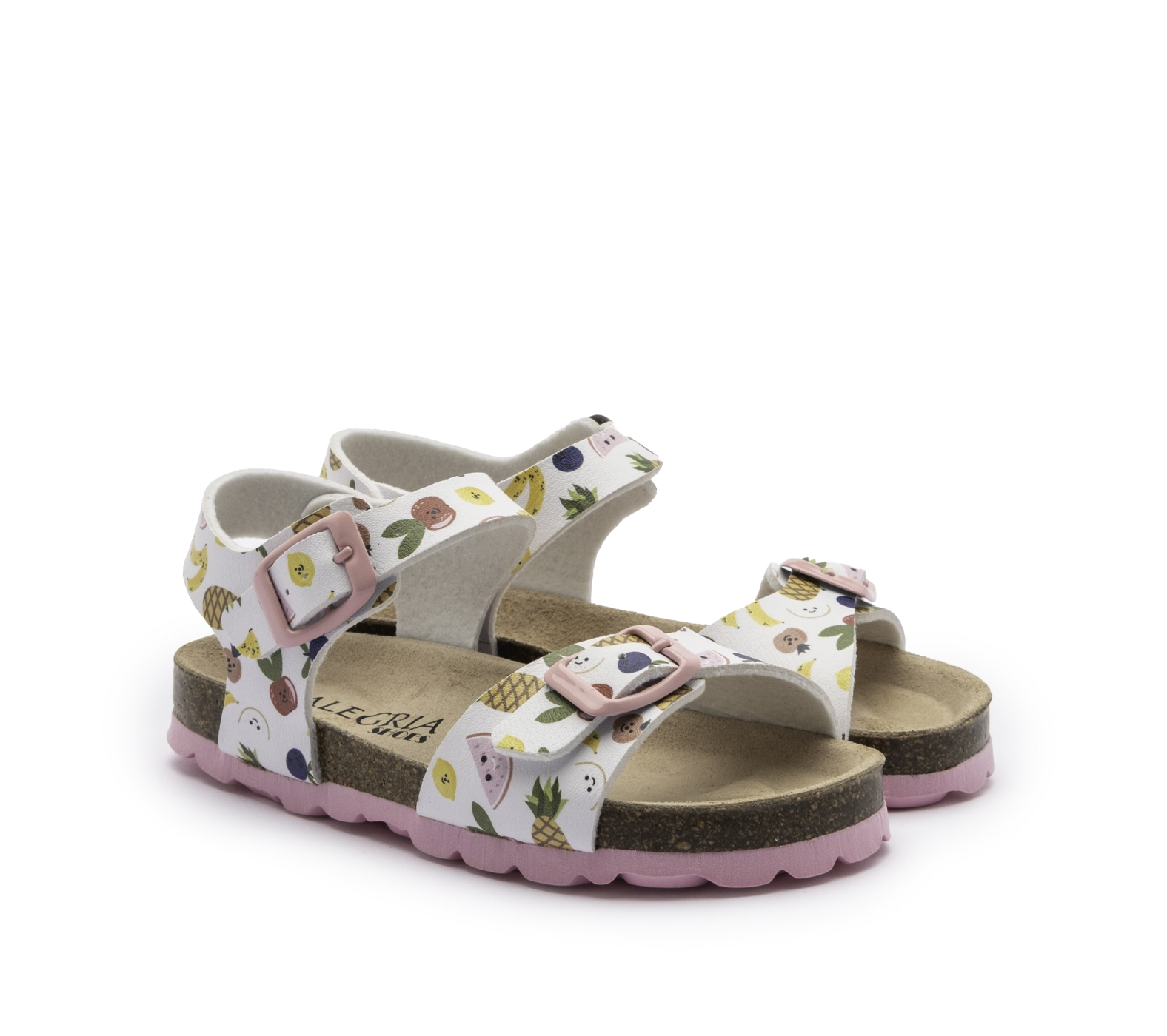 Παιδικά ανατομικά πέδιλα με φελλό από την ισπανική εταιρεία Alegria σε λευκό χρώμα, διακόσμηση με λουλούδια,φρούτα καικαλοκαιρινά μοτίβα που κλέβουν τις εντυπώσεις. Κατασκευασμένα εξωτερικά από ανθεκτικό συνθετικό δέρμα και εσωτερικά με δερμάτινο ανατομικό πάτο. Διαθέτουν σόλα αντιολισθητική με έντονο χρώμα για ασφάλεια και άνεση σε κάθε πάτημα. Δένουν με εγκράφες-τοκάδες, κρατώντας το παιδικό πόδι πολύ σταθερό. Έχουν στενή γραμμή και προτείνονται για καλοκαιρινές βόλτες με στυλ.Tην παράσταση κλέβουν οι έγχρωμες φλοράλ διακόσμήσεις στο στέλεχος του παπουτσιού !