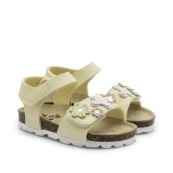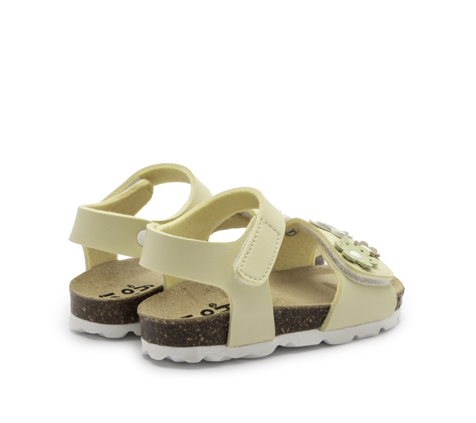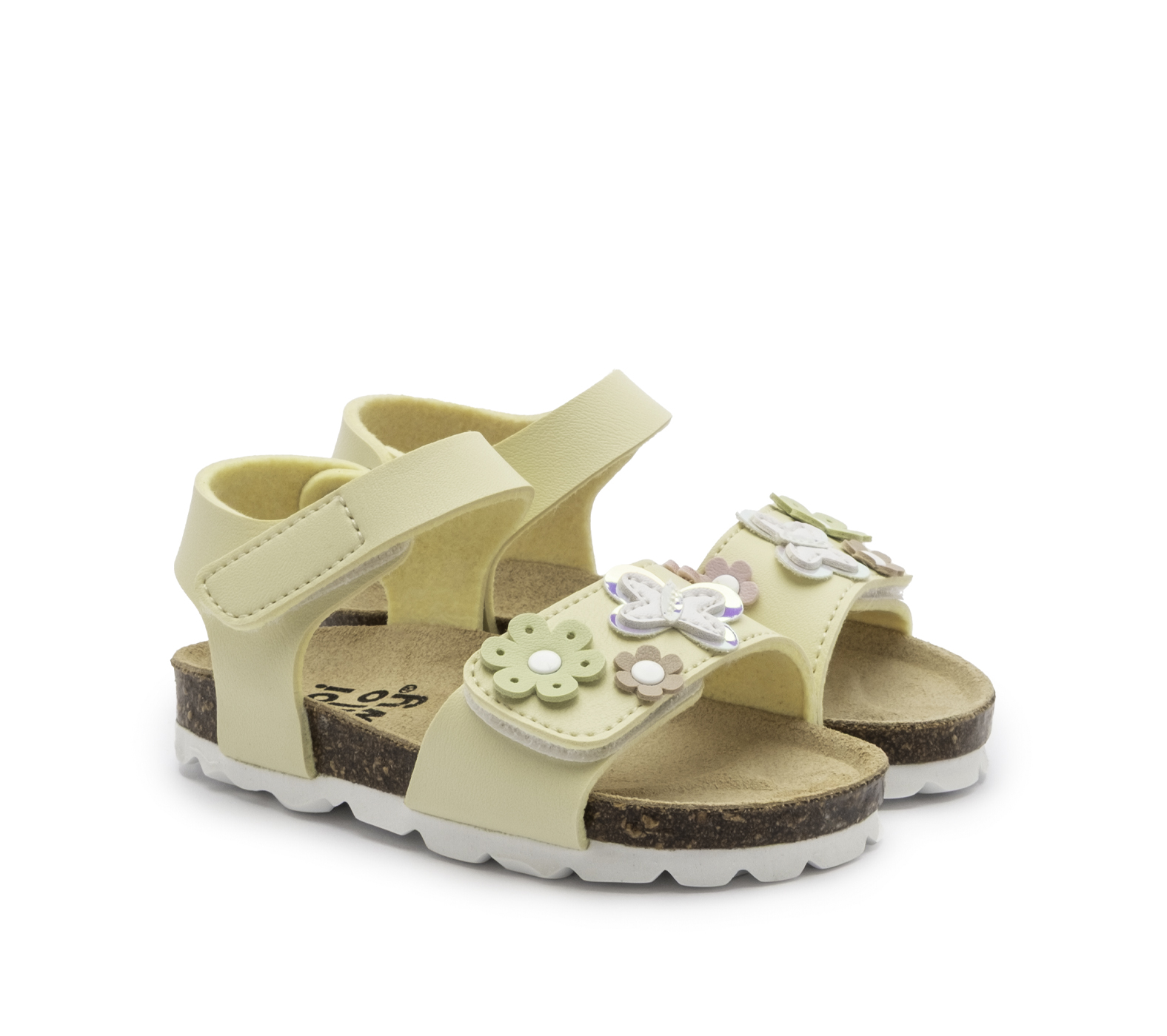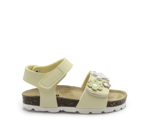 Παιδικά ανατομικά πέδιλα με φελλό από την ισπανική εταιρεία Billowy σε Κίτρινο χρώμα και διακόσμηση με λουλουδάκια,μαργαρίτες και πεταλούδες στο βέλκρο που κλέβουν τις εντυπώσεις. Κατασκευασμένα εξωτερικά από ανθεκτικό συνθετικό δέρμα και εσωτερικά με δερμάτινο ανατομικό πάτο. Διαθέτουν σόλα αντιολισθητική με έντονο χρώμα για ασφάλεια και άνεση σε κάθε πάτημα. Δένουν με αυτοκόλλητο, κρατώντας το παιδικό πόδι πολύ σταθερό. Έχουν στενή γραμμή και προτείνονται για καλοκαιρινές βόλτες με στυλ.Tην παράσταση κλέβει η πολύχρωμη διακόσμηση στο βέλκρο του παπουτσιού !