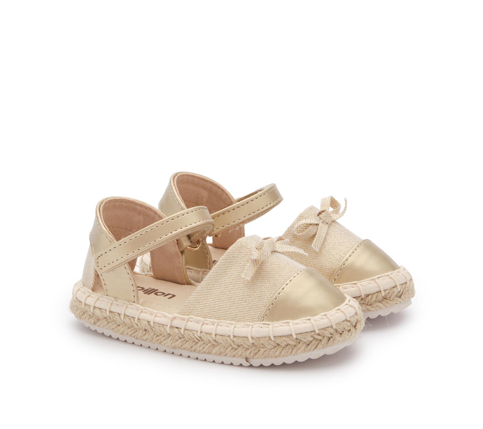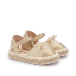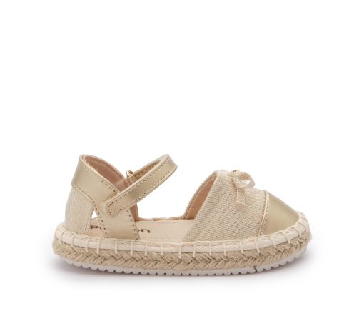 Όλοι θυμόμαστε την παραδοσιακή εσπαντρίγια, και τώρα βλέπουμε τη μοντέρνα της εκδοχή ! Λυγίζουμε μπροστά στο όμορφο μοντέλο Papillon, με το υφασμάτινο στέλεχος σε Χρυσό χρώμα, υφασμάτινη επένδυση και φυσικά εσωτερική υφασμάτινη και εξωτερική σόλα,κλείνει με ρυθμιζόμενο βέλκρο. Η μάρκα Papillon μας ξετρελαίνει με αυτό το παπούτσι που είναι συνώνυμο της άνεσης και της χαλάρωσης. Με τη σόλα του από , εμφανίζει το χαρακτηριστικό στιλ του είδους. Μας τα προσφέρει όλα!Παιδικές υφασμάτινες εσπαντρίγιες για κορίτσια από την  εταιρεία Papillon  σε Χρυσό χρώμα λεπτομέρειες μεταλιζέ. Κατασκευασμένες εξωτερικά και εσωτερικά από ύφασμα, διαθέτουν ελαφριά λαστιχένια σόλα διακοσμημένη με σχοινί κατάλληλη για πολύωρη χρήση. Τοποθετούνται εύκολα και γρήγορα με τη χρήση βέλκρου, κρατώντας το πόδι πολύ σταθερό και προσφέροντας τη δυνατότητα της αυξομείωσης για όλους τους τύπους ποδιών. Έχουν άνετη γραμμή, προτείνονται για ενδοσχολικές δραστηριότητες και για καλοκαιρινές βόλτες με στυλ.