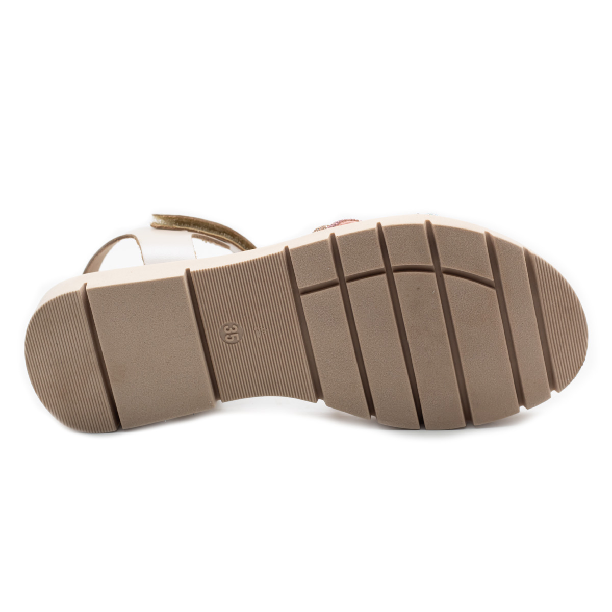 Στις καλοκαιρινές προτάσεις της μάρκας RICO MONDO  τα κοριτσίστικα σανδάλια. Η γερά κατασκευασμένη γάμπα του παπουτσιού – Φυσικό δέρμα – Γυαλισμένο, Grain leather – προσφέρει την ολοήμερη άνεση. Η εσωτερική φόδρα: δέρμα, βοηθά στην διατήρηση της καλής ιδιότητας υγιεινής. Δεν έλειψαν οι πάτοι (δέρμα) οι οποίοι περιορίζουν την ολίσθηση των ποδιών.Η ενδιαφέρον εμφάνιση στα σανδάλια προσθέτει η αρχαιοελληνική όψη Άνετα, αέρινα και εύκολα στην διατήρηση, είναι αρκετά Η σόλα είναι υλικό υψηλής ποιότητας, παρέχει ελαφρύ μόνωση από το έδαφος. Κατάλληλα για τις ζεστές μέρες, θα τα βγάλουν πέρα ακόμα και στις υψηλότερες θερμοκρασίες.