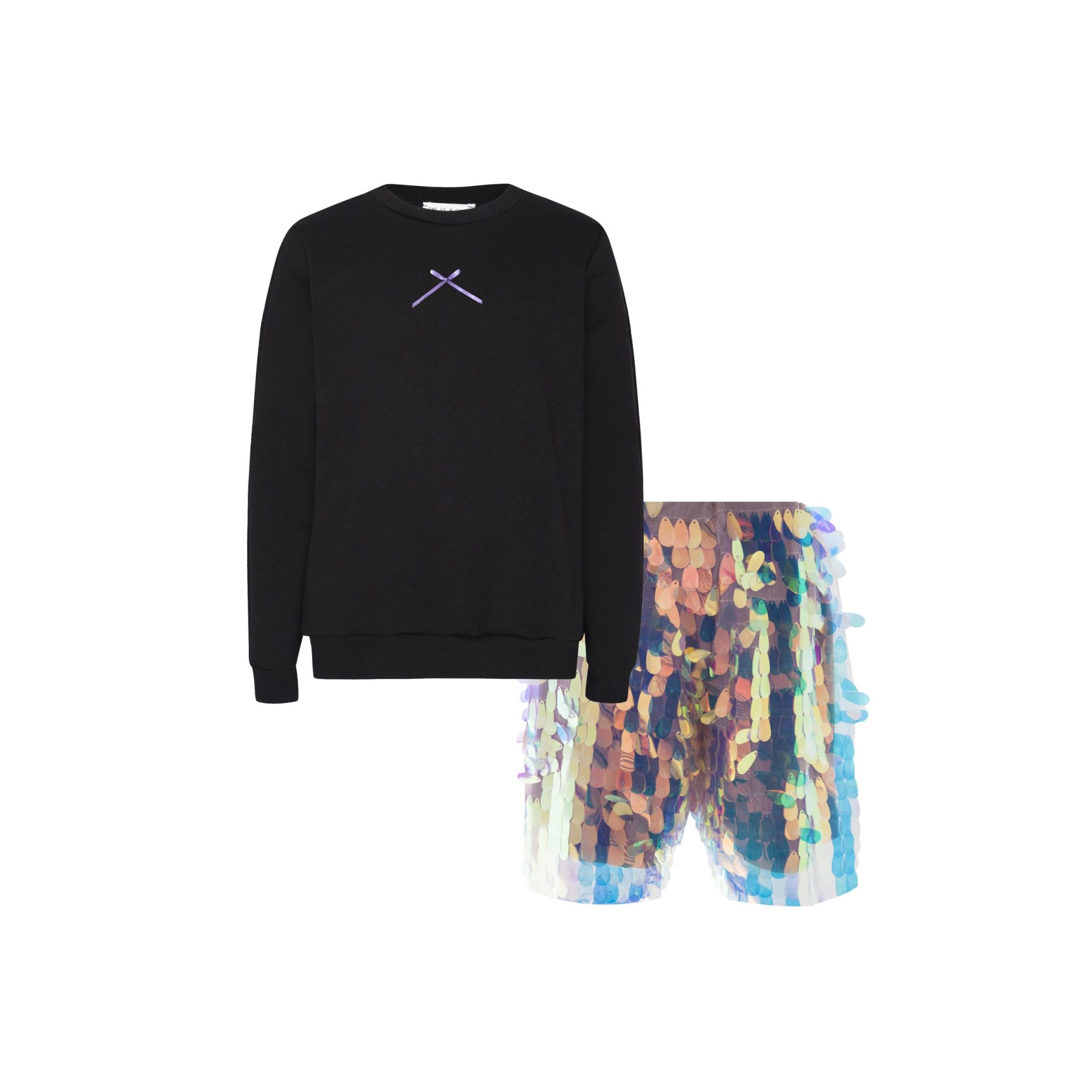 Composition: 100% Cotton (Top) -100% Polyester – 96% Viscose 4% Elastan (Sequined Shorts)