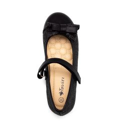 Η ΤΟΥΙΤΙ είναι μία χαριτωμένη μπαρέτα. Το επάνω μέρος είναι κατασκευασμένο από μαύρο Γκλίτερ με δερμάτινη επένδυση που βοηθά τα πόδια να κρατούνται φρέσκα και φιόγκο για διακόσμηση . Διαθέτει αυτοκόλλητο βέλκρο για γρήγορη και εύκολη εφαρμογή. Στο μπροστινό μέρος έχει έναν πολύ όμορφο διακοσμητικό φιόγκο. Η σόλα είναι από καουτσούκ που είναι ανθεκτική και παρέχει καλή πρόσφυση.