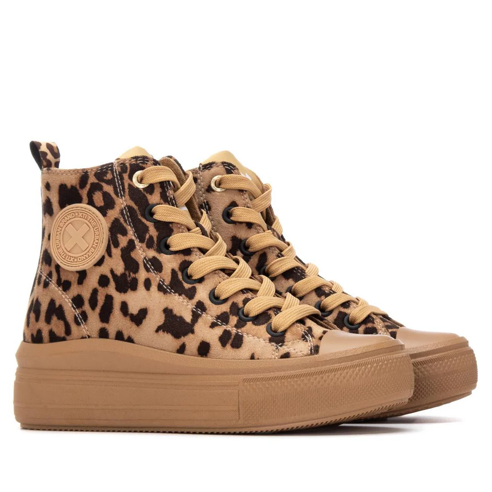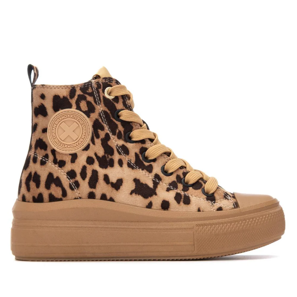 Κοριτσίστικο παπούτσι μποτάκι τύπου All Star από το brand Xti kids.Μποτάκι μέχρι τον αστράγαλο για κορίτσια από την Xti Kids.Μποτάκια αστικού στιλ για κορίτσια από την Xti Kids. Κατασκευασμένα από ύφασμα που μιμείται λεοπάρ μοτίβο, προσφέροντας μια διασκεδαστική και μοντέρνα πινελιά. Διαθέτει εσωτερικό φερμουάρ για γρήγορη και ασφαλή εφαρμογή. Το σχέδιο διαθέτει απλές γραμμές και επίπεδη σόλα για καθημερινή άνεση.      Aνθεκτικό φινίρισμα. Σχεδιασμός σε στυλ sneaker με λαστιχένια μύτη και ψηλή σόλα, του δίνει μια μοντέρνα, casual εμφάνιση. Διαθέτει κορδόνια στο μπροστινό μέρος και εσωτερικό φερμουάρ για εύκολη εφαρμογή. Η λαστιχένια σόλα προσφέρει άνεση και καλό κράτημα. Ιδανικό για ένα casual στυλ με μοντέρνα πινελιά.  Κλείσιμο με φερμουάρ. Λογότυπο από καουτσούκ στο πλάι. Χοντρή αντιολισθητική σόλα από καουτσούκ. Αυτό το μοντέλο έχει πιστοποιηθεί vegan από τον παγκόσμιο οργανισμό PETA (Animal Rights Organization).